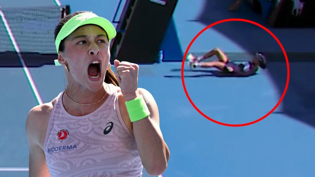 Dünya 11 numarası Ekaterina Alexandrova’nın ilk tur maçında seti eşitlemek için servis kullandığı sırada, sıcak hava koşullarından etkilenen top toplayıcı